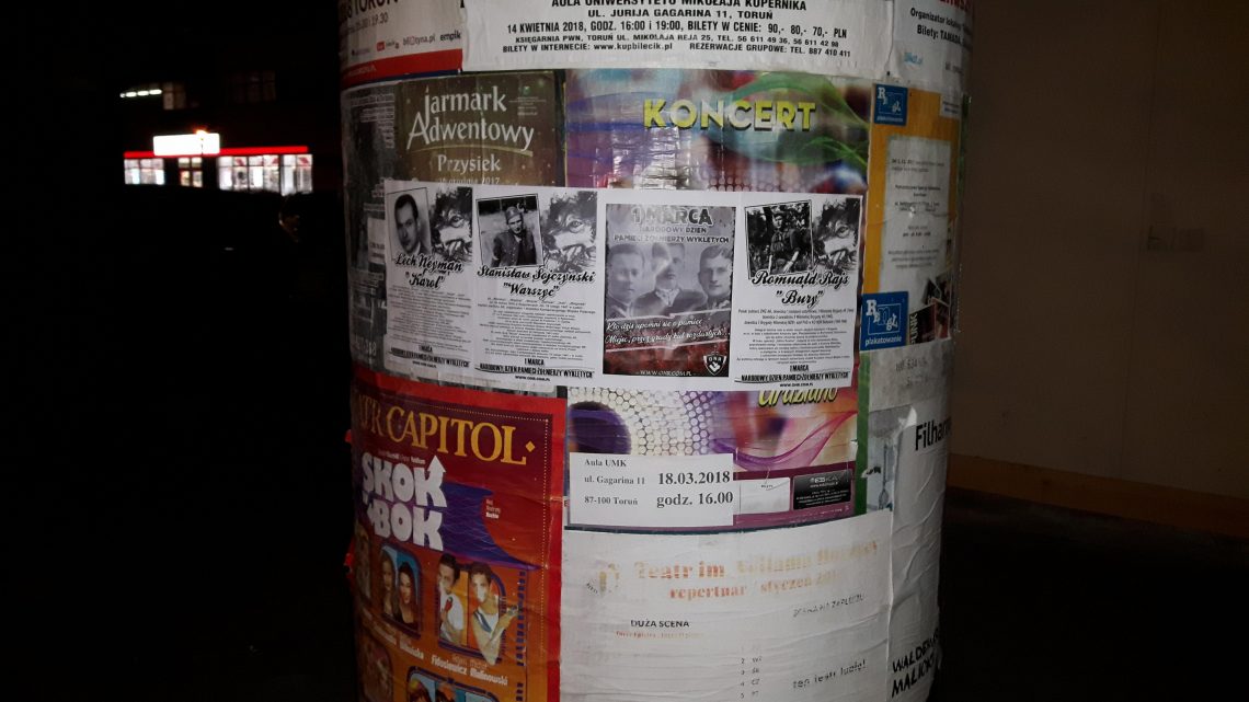 Z okazji 1-ego marca, działacze Brygady Kujawsko-Pomorskiej postanowili przypomnieć mieszkańcom województwa o Narodowym Dniu Pamięci Żołnierzy Wyklętych oraz przybliżyć im sylwetki poszczególnych Bohaterów- Lecha Neymana, Romualda Rajsa oraz Stanisława Sojczyńskiego. Plakaty zostały rozklejone w widocznych miejscach w następujących miastach: Toruń, Bydgoszcz, Włocławek oraz Łabiszyn.