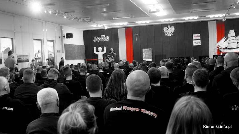 Po marszu udaliśmy się na miejsce koncertu, jednak za nim usłyszeliśmy włoskiego barda Skolla, który przybył do Polski w związku z naszą rocznicą, odbył się wykład – Guido Giraudo (dziennikarz, pisarz, aktywista, legendarna postać włoskiej prawicy. W latach 70. członek zespołu muzycznego Amici del Vento, kierownik regionalny organizacji studenckiej FUAN, potem założyciel Stowarzyszenia Kulturalnego Lorien i autor książki o Sergio Ramellim.). Twórca przyjechał do Gdańska w związku z pojawieniem się na polskim rynku jego publikacji „Poza Lasem. Zbiór opowiadań naukowo poprawnych i politycznie niepoprawnych”. Zbiór ten został wydany przez Brygadę Małopolską ONR. W tym tygodniu na naszym portalu pojawi się recenzja książki. Tłumaczem z języka włoskiego była Kol. Sylwia Mazurek.