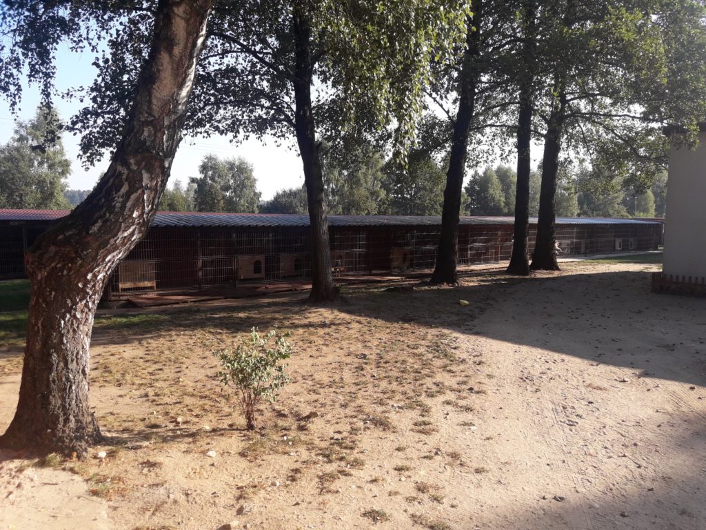 Znajduje się ono w Niemojewie obok Lututowa. Przywieźli ze sobą zakupione wcześniej miseczki na pokarm, wodę. Własnoręcznie wykonali stojaki, które umożliwiają psom rasy dużej i olbrzymiej (a takie również znajdują się w placówce) o wiele bardziej komfortowe spożywanie psich posiłków.