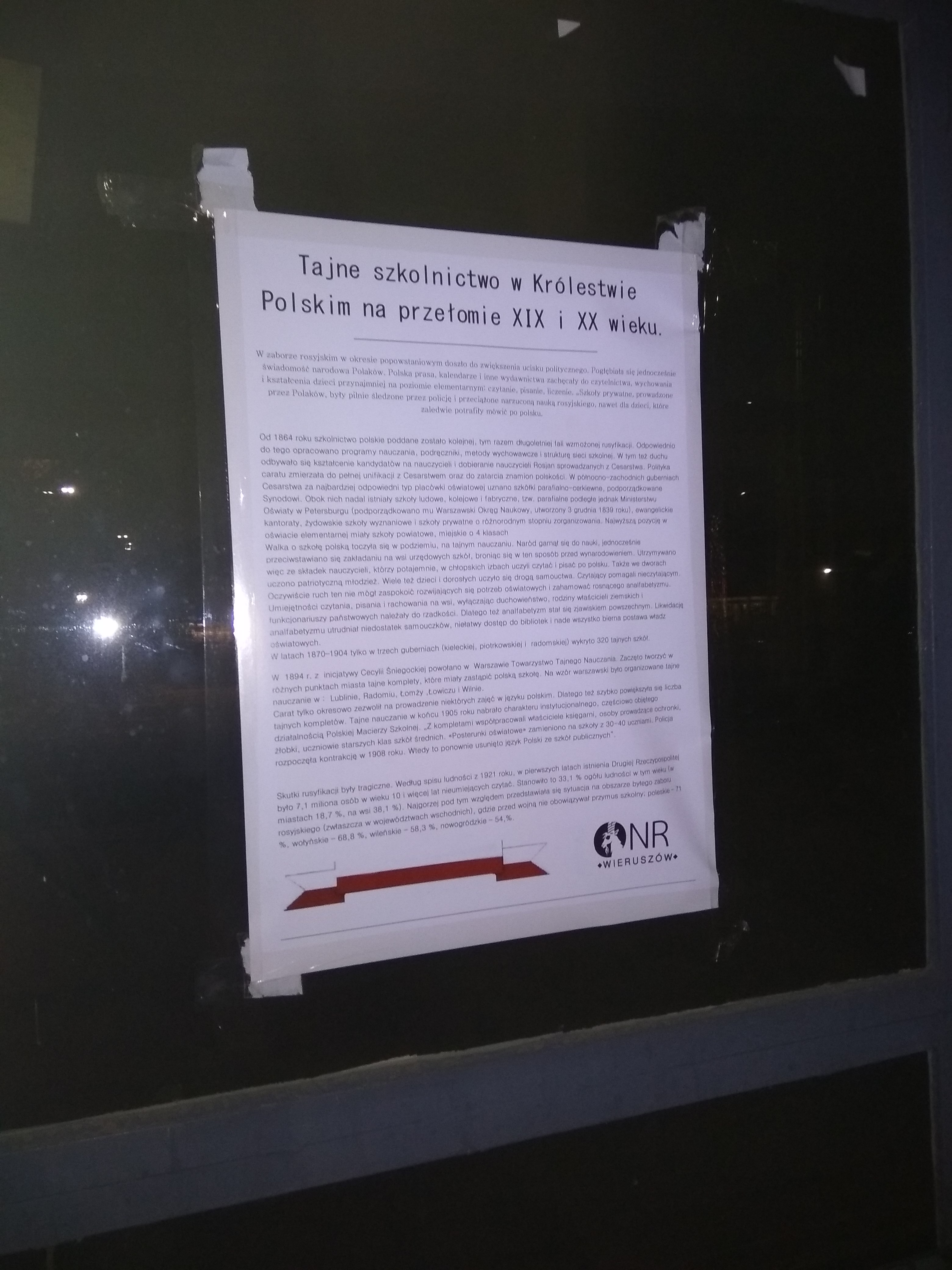 W Dzień Edukacji Narodowej działacze ONR Wieruszów zorganizowali akcję plakatowania na terenie miasta.