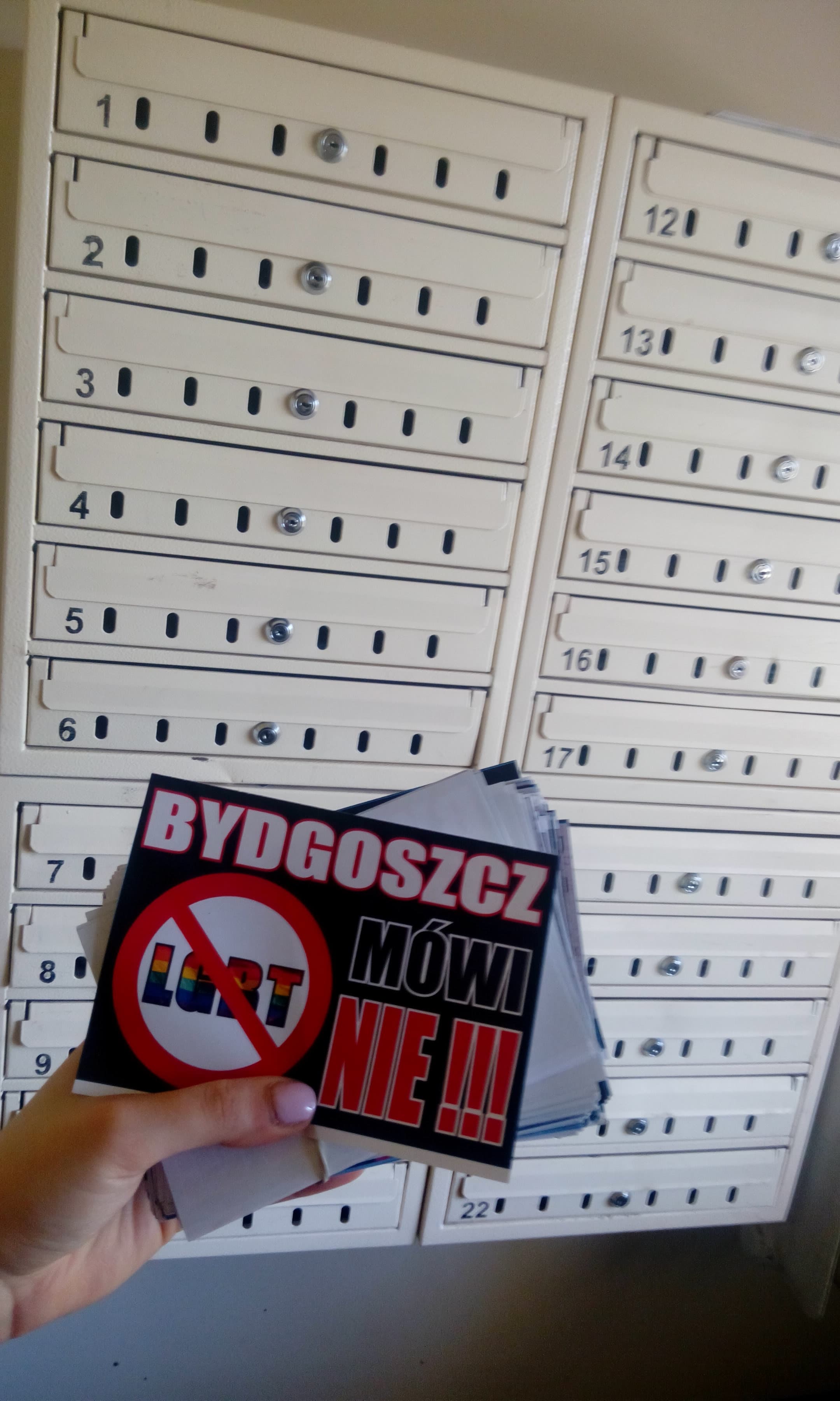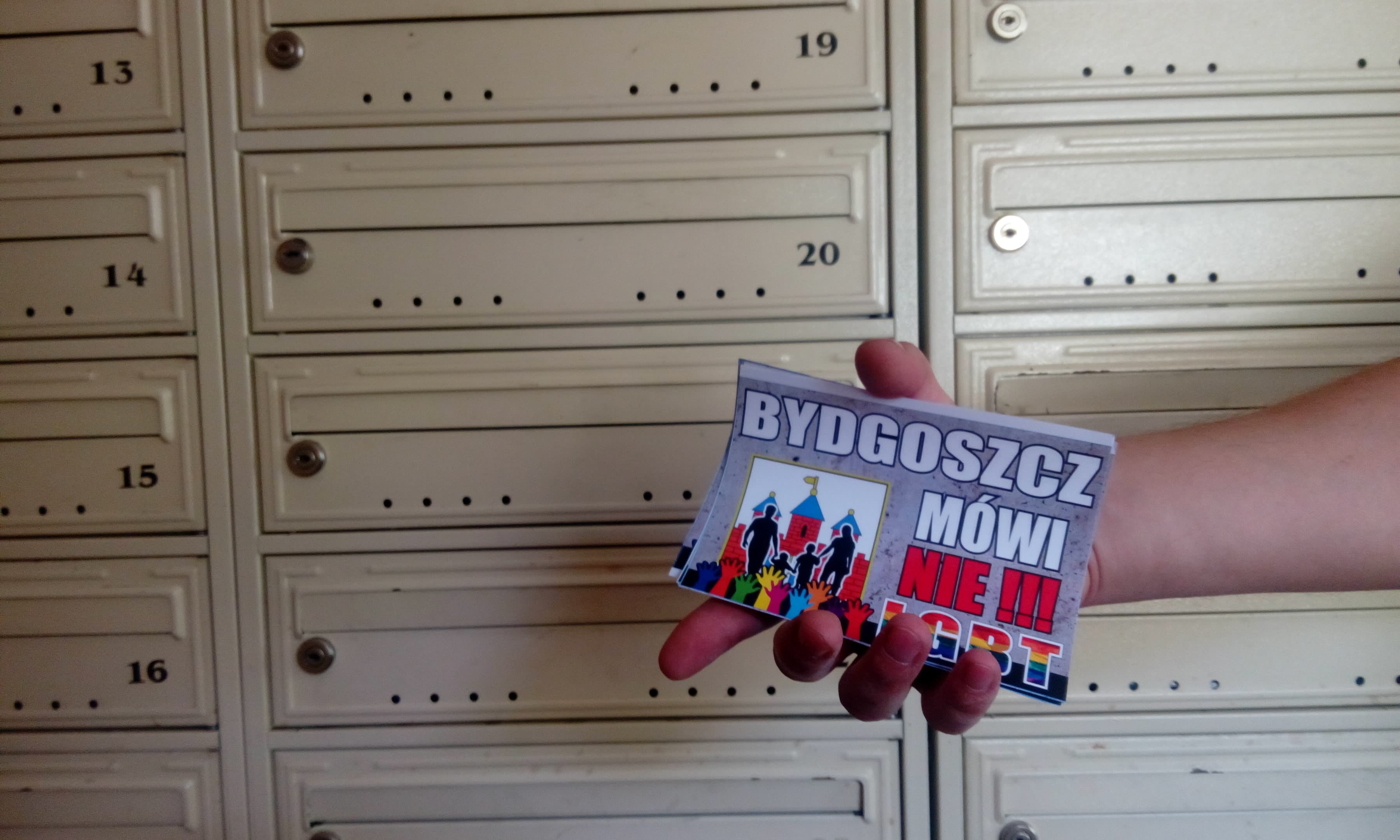 Roznosiliśmy ulotki wśród mieszkańców takich dzielnic jak: Szwederowo, Wzgórze Wolności i Glinki. Miało to na celu uświadomienie bydgoszczan, że nie zgadzamy się z Panem prezydentem miasta Rafałem Bruskim, który objął honorowy patronat nad nadchodzącym „I Marszem Równości” w naszym mieście.