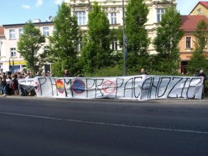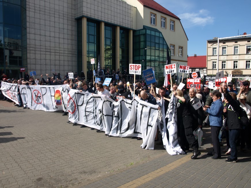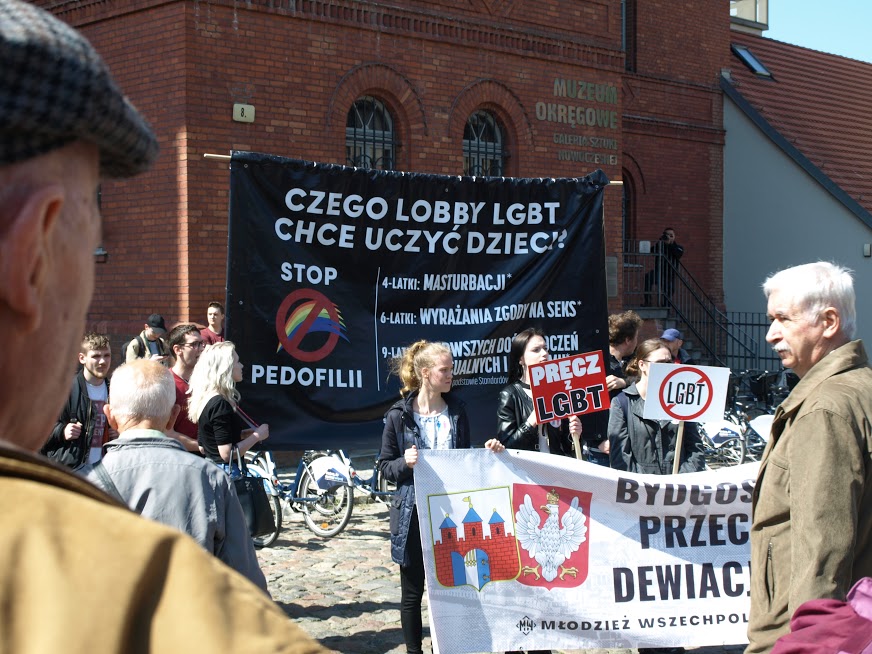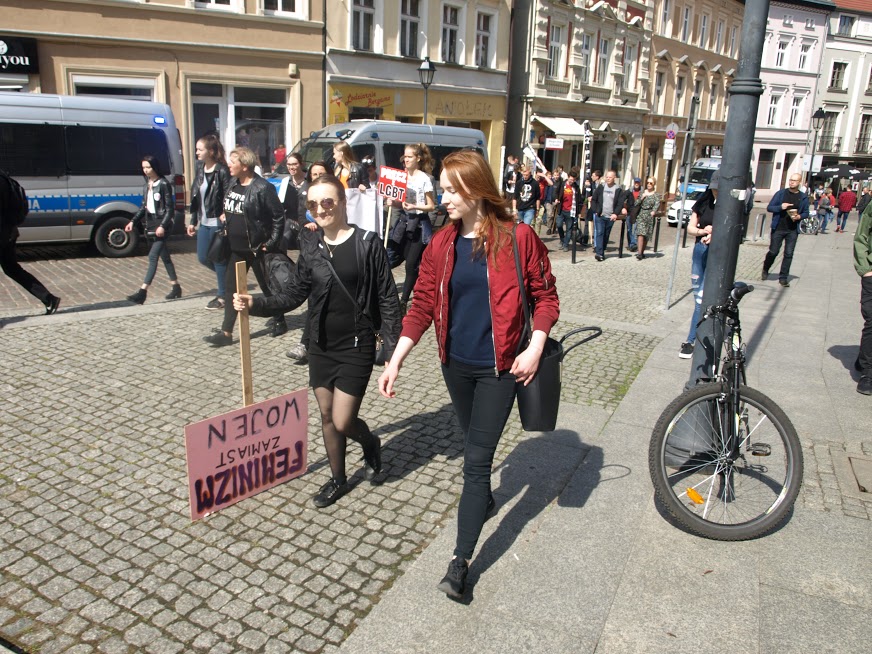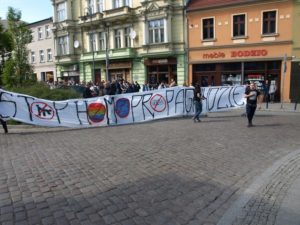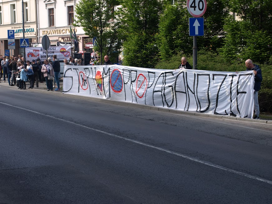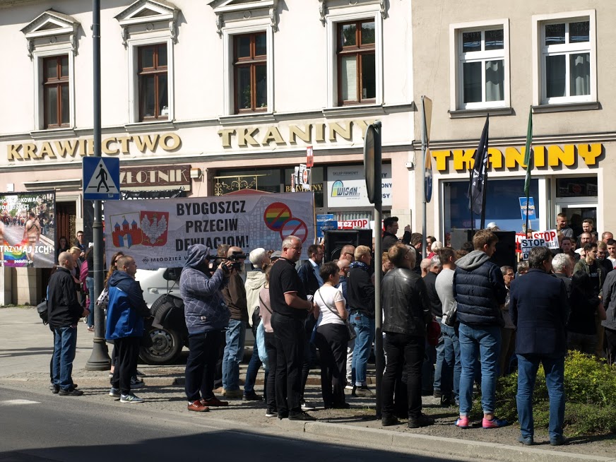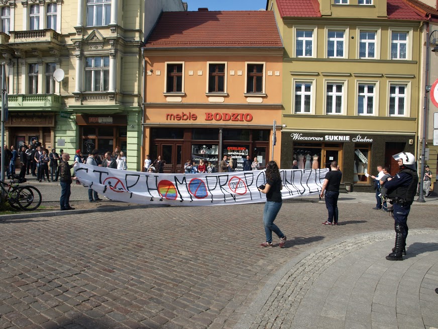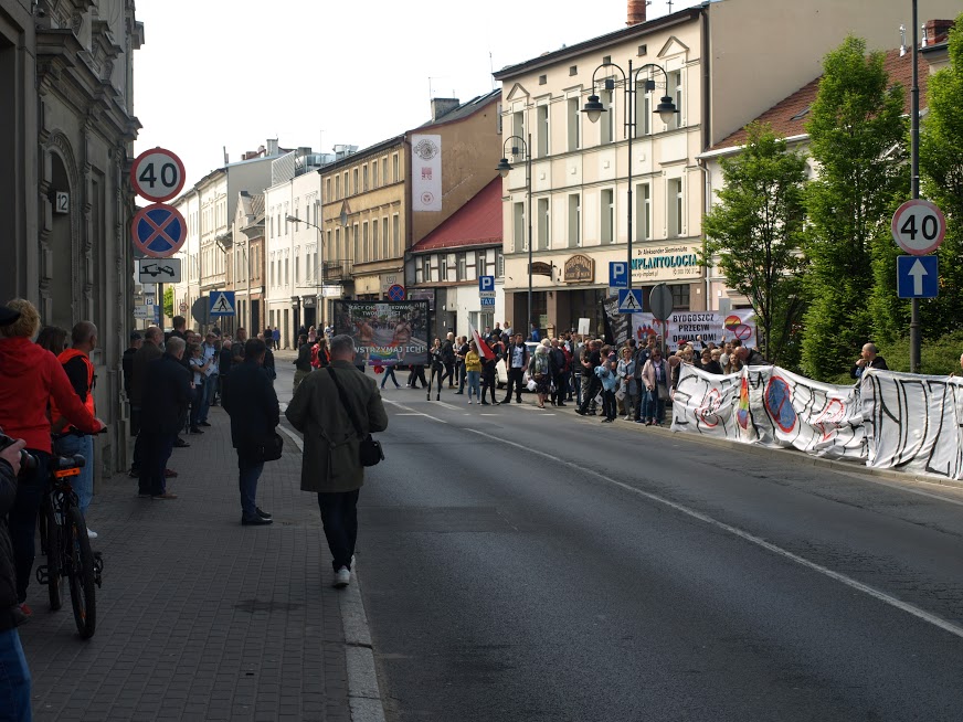 Tego dnia siły prewencyjne nie ustępowały nawet o krok nagrywając uczestników protestu i otaczając całe zgromadzenie szczelnym kordonem policji. Nasz sprzeciw wobec niedorzecznościom propagowanym przez LGBT nie przeszedł jednak bez echa. Przekazy z transparentów, stanowcze hasła wyrażające głośne „NIE” dla czegoś, co nie było, nie jest i nigdy nie będzie mogło być normalne, zostały nie tylko zostały uwiecznione na zdjęciach, filmach, trafiły do sieci, ale również dały do zrozumienia maszerującym dziwolągom (tak, dokładnie, proponujemy zobaczyć zdjęcia z tego wydarzenia – przerażające, że w dużej mierze w tym marszu uczestniczyły także nastolatki, zdaje się, nieświadome skali problemu), że nie ma naszej zgody na tego rodzaju dewiacje w mieście nad Brdą.