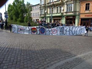 Pikieta miała miejsce na zbiegu ulic Ku Młynom z Mennicą, a następnie przeniosła się na Wełniany Rynek. Wyraziliśmy swój sprzeciw wobec degeneracji społeczeństwa, promowaniu zboczeń na tle seksualnym w szkołach i poza nią, a także wobec pedofilii.