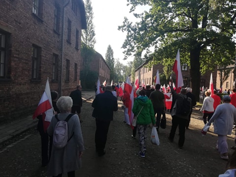 Po wejściu do obozu odśpiewano Hymn Państwowy oraz Rotę. Na zakończenie wszyscy uczestnicy marszu, oddali hołd ofiarom niemieckiej zbrodni pod Ścianą Śmierci.