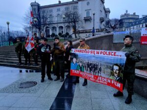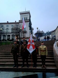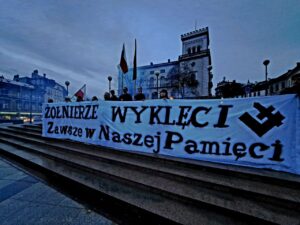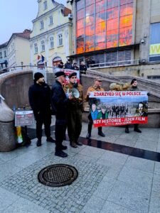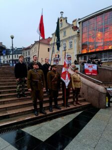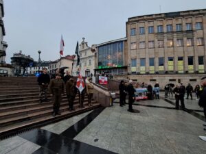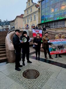W Bielsku-Białej zorganizowaliśmy wspólnie ze Związkiem Żołnierzy Narodowych Sił Zbrojnych okręg Śląsk Cieszyński pikietę w samym centrum miasta – na Placu Bolesława Chrobrego.