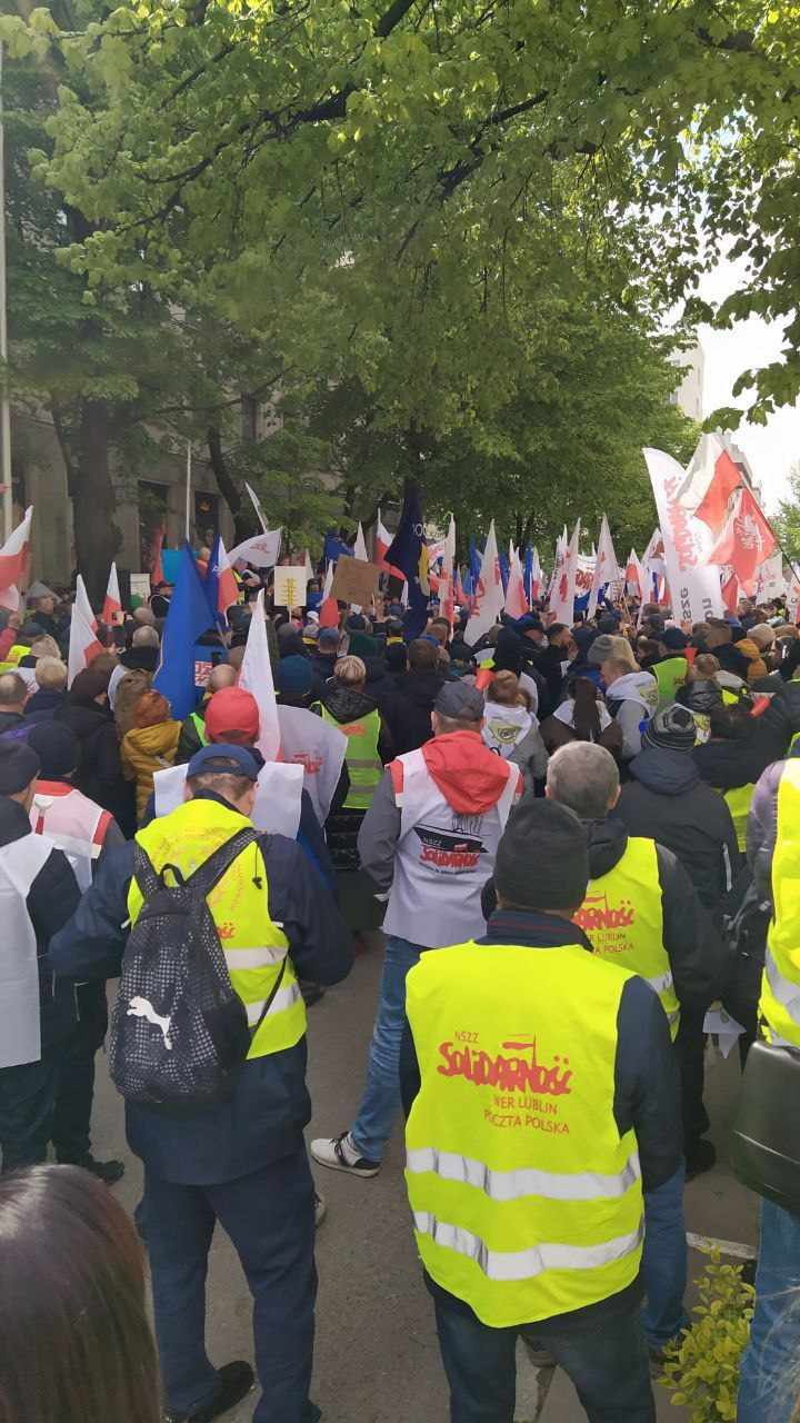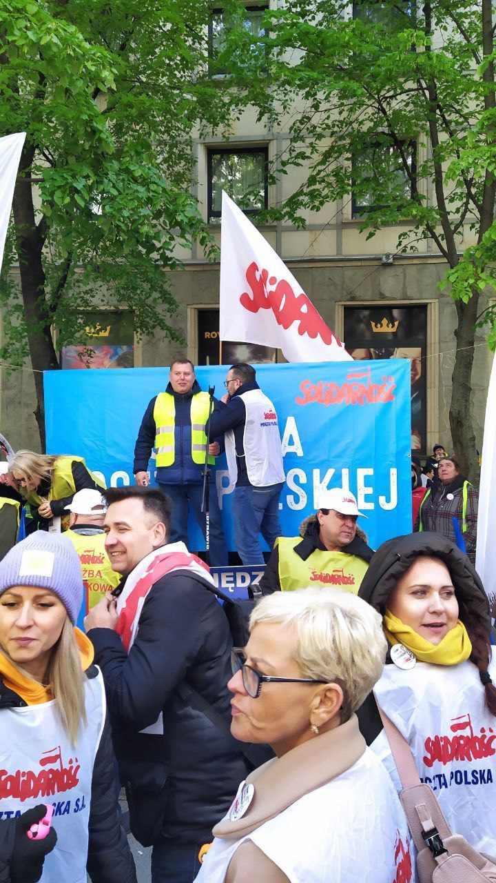 23.04.2024 w Warszawie przed Ministerstwem Aktywów Państwowych o godzinie 13. Odbył się protest pracowników Poczty Polskiej.