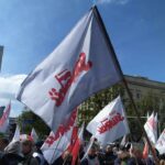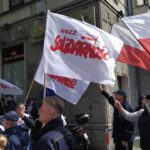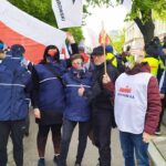Przed ministerstwem pojawili się również, wspierający pocztowców, działacze Obozu Narodowo-Radykalnego.