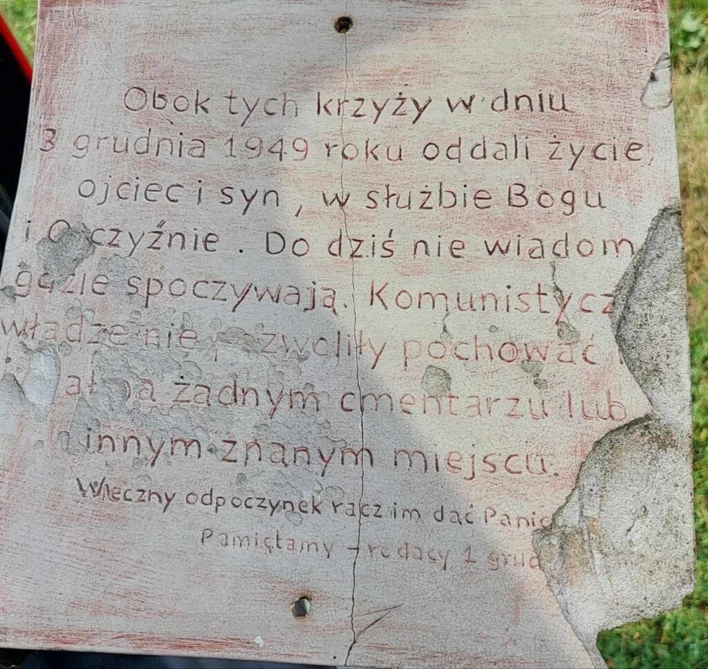 W Mężeninie zapaliliśmy znicze pod krzyżem upamiętniającym miejsce śmierci por. Kazimierza Żebrowskiego Ps. Bąk i jego syna, Jerzego Żebrowskiego Ps. Konar, którzy zginęli w 1949 r. w wyniku obławy UB, MO i LWP.