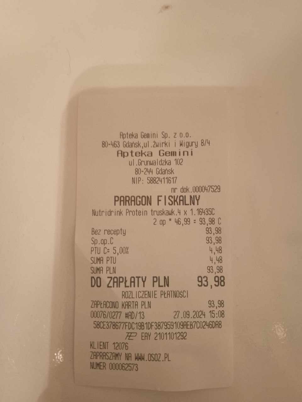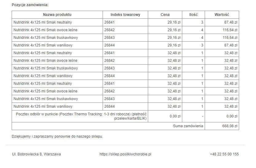 Łącznie udało nam się zakupić 24 4-paki nutridrinków, co daje liczbę 96 butelek.