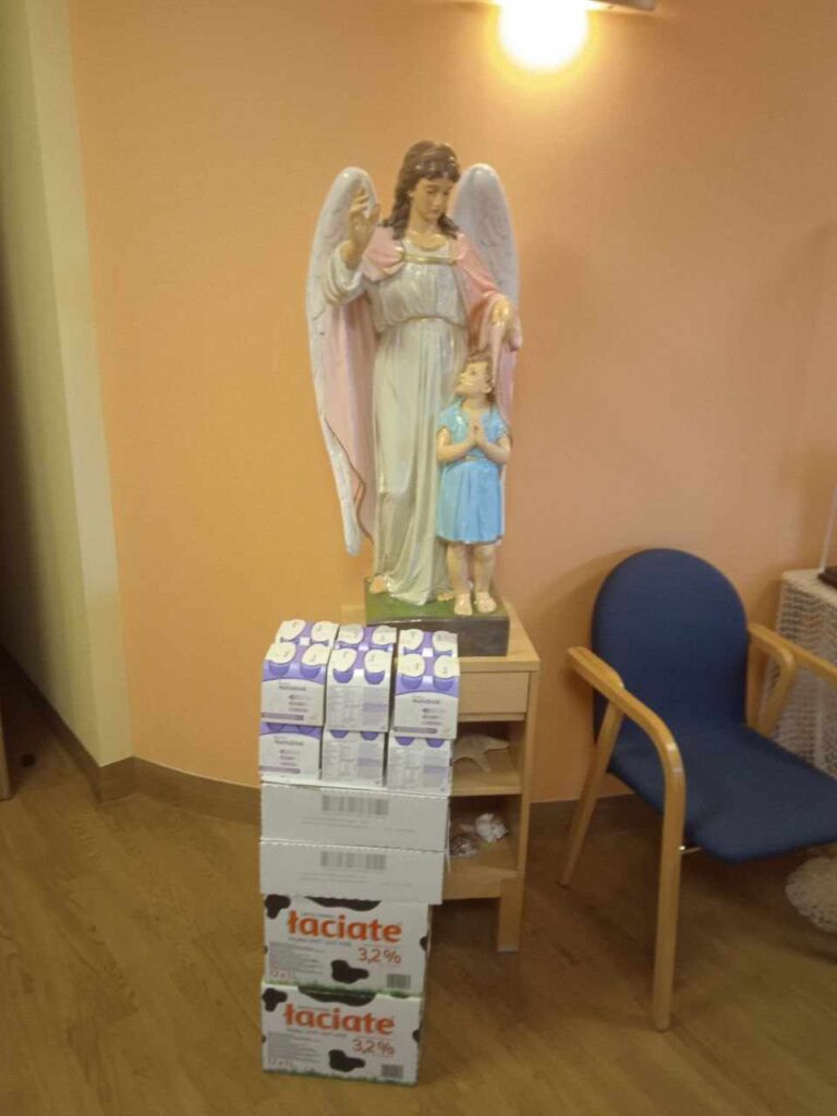 Oprócz tego, na prośbę księdza-dyrektora hospicjum otrzymaną dziś w drodze rozmowy telefonicznej, dokupujemy i przywozimy wraz z główną pomocą, dwie zgrzewki mleka.