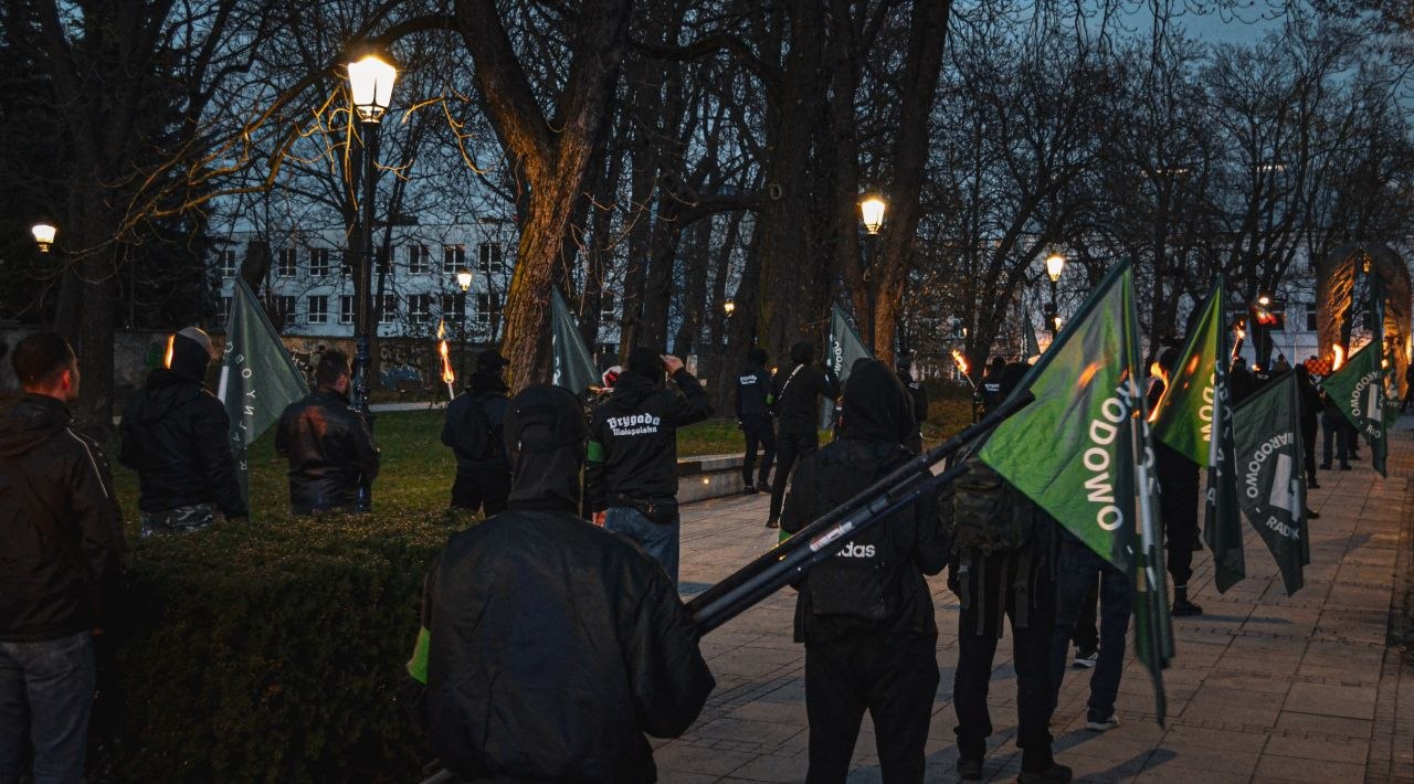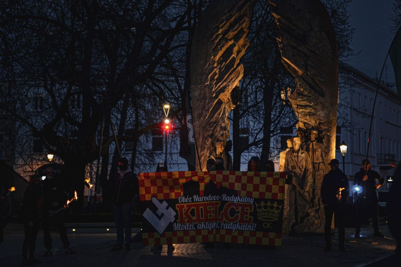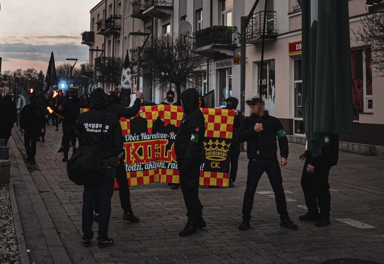 Po zakończeniu części wykładowej, w blasku pochodni przemaszerowaliśmy ulicami miasta. Nasz bezkompromisowy przekaz odbił się szerokim echem w samym sercu województwa świętokrzyskiego. Wybrzmiały tam antyszowinistyczne, antyimperialne i propracownicze hasła, które dobitnie wskazują bieżący kierunek naszych działań.